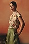 Featuring a beige crop top in pure crepe base with ikat pattern and sequins hand work. Style it with pants, hoop earrings and heels for casual outings or brunches.