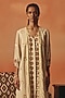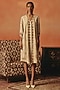 Featuring a beige dress in pure crepe base with ikat pattern, sequins and tassel hand embroidery. Style it with hoop earrings and mules for casual gatherings, brunches or sundowner.