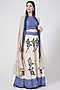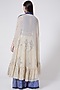 Featuring off-white gharara pants in crepe base with floral butta print and geometric sequins hand embroidery. It is paired with a crop top and a block-printed ruffled cape. Accentuate it with statement jewellery and heels for festive occasions.