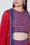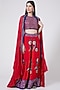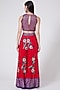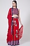 Featuring red gharara pants in crepe base with floral butta print and geometric sequins hand embroidery. It is paired with a matching crop top and a block-printed ruffled dupatta. Accentuate it with statement jewellery and heels for weddings or festive occasions.