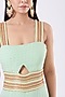 Featuring a mint jumpsuit in georgette base with golden dot print, an embellished waist belt, and straps.