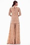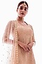 Featuring a peach short kurta in georgette and net base with gold aari, sequins, and pearl embroidery. It is paired with matching sharara pants and a dupatta.