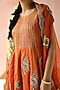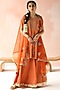 Featuring an orange kurta in chanderi silk base gota and marori hand embroidery including screen print. It is paired with a matching chanderi silk skirt and an organza cape.