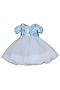 Featuring an ice blue dress for girls in net base with embellishment. It is paired with a detachable bow. Style it with sandals and hair accessories for birthday party or playdate.