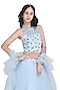 Featuring an ice blue lehenga for girls in net base. It is paired with en embroidered blouse and a dupatta. Accessorize it with matching hair accessories and sandals for a stylish ensemble, ideal for a sangeet or wedding ceremony.