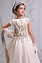 Featuring an ivory gown for girls in organza tissue base with embroidery. It is paired with a bow. Accessorize it with matching hair accessories and sandals for a stylish ensemble, ideal for any festive occasion or birthday party.