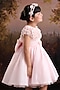 Featuring a peach pink gown for girls in organza tissue base with embroidery. It is paired with a bow. Accessorize it with matching hair accessories and sandals for a stylish ensemble, ideal for any festive occasion or birthday party.