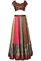 Featuring a multi colored lehenga skirt in banarasi silk base. It is paired with matching blouse and dupatta.
