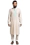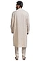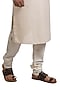 Featuring an off-white kurta in matka silk base with hand embroidery. It is paired with matching churidar pants.