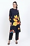 Featuring a black kurta in vegan silk base with print. It is paired with pants. Accentuate it with dangler earrings and heels for a complete look.