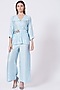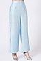 Featuring a powder blue short jacket in linen blend and silk base with double collars. It is paired with matching loose pants.