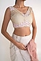 Featuring an ivory fish-cut lehenga for girls in net and organza base with pearl and 3D floral embroidery. It is paired with a matching net blouse and a contrasting peach chiffon structured dupatta.