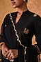 Featuring a black kurta in chanderi base with zari and sequins embroidery. It is paired with embroidered scalloped pants and an organza embroidered dupatta. Accentuate the set with polki dangler earrings and block heels for an elegant look, Perfect for a festive occasion or sangeet ceremony.