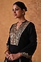 Featuring a black kurta in chanderi base with zari and sequins embroidery. It is paired with embroidered scalloped pants and an organza embroidered dupatta. Accentuate the set with polki dangler earrings and block heels for an elegant look, Perfect for a festive occasion or sangeet ceremony.