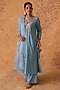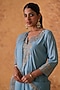 Featuring a blue kurta in chanderi base with zardosi embroidery. It is paired with embroidered pants and an organza embroidered dupatta. Accentuate the set with polki dangler earrings and block heels for an elegant look, Perfect for a festive occasion or sangeet ceremony.