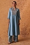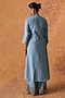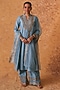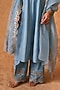 Featuring a blue kurta in chanderi base with zari and sequins embroidery. It is paired with embroidered scalloped pants and an organza embroidered dupatta. Accentuate the set with polki dangler earrings and block heels for an elegant look, Perfect for a festive occasion or sangeet ceremony.