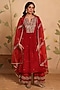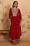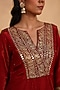 Featuring a maroon kurta in habutai silk base with mirror, sequins and zari embroidery. It is paired with pants and an organza embroidered dupatta. Accentuate it with statement earrings, soft curls and block heels for festive soirees or pooja ceremony.