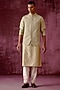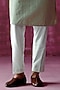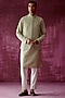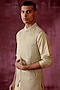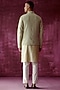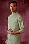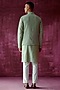 Featuring a sage green bundi jacket in cotton silk base with embroidery. It is paired with an embroidered kurta and off-white pants. Perfect attire for festive occasions or pooja ceremony.