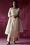 Featuring an off-white kurta in chanderi base with mirror and gota hand embroidery. It is paired with matching embroidered pants and an organza embroidered dupatta.