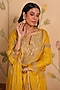 Featuring a yellow kurta in habutai silk base with mirror, sequins and zari embroidery. It is paired with pants and an organza embroidered dupatta. Accentuate it with statement earrings, soft curls and block heels for festive soirees, haldi or pooja ceremony.