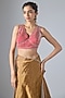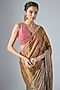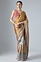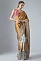 Featuring a multi-colored saree in handwoven jacquard tissue base with zardosi and aari embroidery. It is paired with a hot pink Mashru embroidered blouse. Style this saree with polki stud earrings, soft curls and metallic heels for a weddings, pooja or sangeet ceremonies.