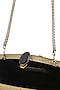 Featuring a dull gold clutch in brass base with black gemstones embellishments. It has a black velvet underlining and a detachable chain handle.