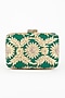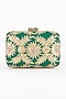 Featuring a sea green clutch in pure silk base with floral gota patti hand embroidery. It has a shantoon underlining and a detachable chain handle.