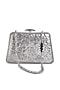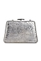 Featuring a silver shell clutch in brass base with jewelled chain. It has a black velvet and shantoon underlining including a detachable chain handle.