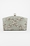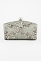 Featuring a silver handmade clutch in pure satin base with floral hand embroidery. It has a shantoon underlining and a detachable chain handle.