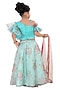 Featuring a blue lehenga for girls in silk base with floral print and an elasticated waist. It is paired with an one-shoulder top having floral and sequins embroidery and a dupatta. Style it with sandals and hair accessories for a wedding or festive occasion.