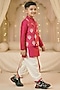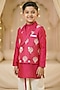 Hot Pink Cotton Nehru Jacket Set For Boys