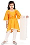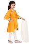 Featuring a orange peplum top for girls in cotton base with digital print. It is paired with sharara pants. Style it with sandals and hair accessories for a festive occasion or wedding ceremony.