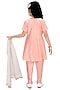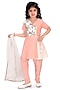 Peach & White Cotton Floral Embroidered Kurta Set For Girls