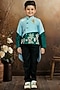 Featuring a sky blue and green coat for boys in raw silk base. It is paired with black pants. Style it with formal shoes or black loafers and a watch for weddings, receptions or evening parties.