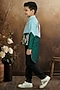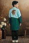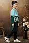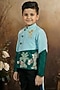 Sky Blue & Green Raw Silk Coat Set For Boys