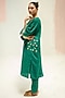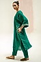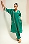 Featuring an emerald green choga kurta in pure linen base with hand embroidery and pockets. It is paired with slim pants. Accentuate it with statement earrings and heels for a festive occasion.