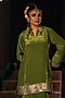 Featuring a mehendi kurta in vegan crepe silk base with embroidery. It is paired with pleated skirt. Accentuate it with statement jewellery and heels for a wedding or mehendi ceremony.