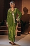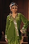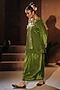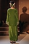 Featuring a mehendi jacket tunic in vegan crepe silk base with embroidery. It is paired with a pleated skirt. Accentuate with minimal jewellery and heels for a festive look or family gatherings.