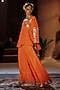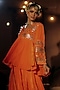 Featuring an orange peplum top in vegan crepe silk base with embroidery. It is paired with palazzo pants and an embroidered choker dupatta. Accentuate it with dangler earrings and heels for a festive occasion or haldi ceremony.