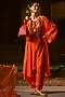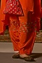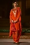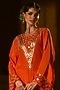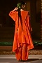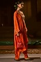 Featuring an orange asymmetrical choga kurta in vegan crepe silk base with embroidery. It is paired with salwar pants. Accentuate it with heels and statement jhumkas for festive occasions.
