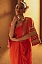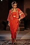 Featuring a red cape in vegan crepe silk base with embroidery. It is paired with a crop top and a skirt. Accentuate it with heels and statement earrings for festive occasion, sangeet or cocktail ceremonies.
