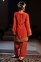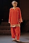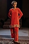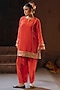 Featuring a red kurta in vegan crepe silk base with embroidery. It is paired with salwar pants. Accentuate it with statement earrings and heels for festive occasions.