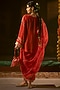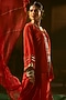 Featuring a red jacket tunic in vegan crepe silk and organza silk base with embroidery. It is paired with a pleated skirt and a dupatta. Accentuate with minimal jewellery and heels for a complete look.