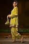Featuring a sublime neon kurta in vegan crepe silk base with embroidery. It is paired with salwar pants. Accentuate it with statement earrings and heels for festive occasions.