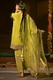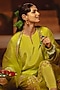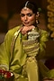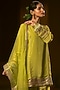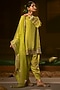 Featuring a sublime neon kurta in vegan crepe silk and organza silk base with embroidery. It is paired with salwar pants and a dupatta. Accentuate it with delicate jewellery and embellished juttis for an elegant touch, perfect for festive gatherings, weddings and evening celebrations.