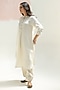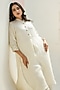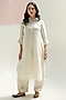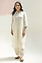 Featuring a white kurta in pure linen base with mandarin collar, hand-embroidered cuffs, sequins and thread work. It is paired with linen pants. Accentuate it with statement earrings and heels for a festive occasion.