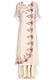 This set features an ivory kurta in chanderi silk base with parsi and dabka french knots pink embroidery all over the side front. It comes along with an ivory crushed cotton underlayer anarkali and matching palazzo pants.