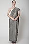 Featuring a black and white saree in hand woven silk chanderi base with checks, dabka, and kasab embroidery. It is paired with a matching blouse and a cotton petticoat.
