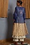 Featuring an ink blue and golden kurta in silk maheshwari base with floral embroidery. It is paired with matching palazzo pants and a slip.