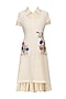 This set features an ivory hand woven kurta dress in silk chanderi with French Knots and floral Dabka Embroidery on Pockets. It comes along with mustard Crushed cotton tunic.